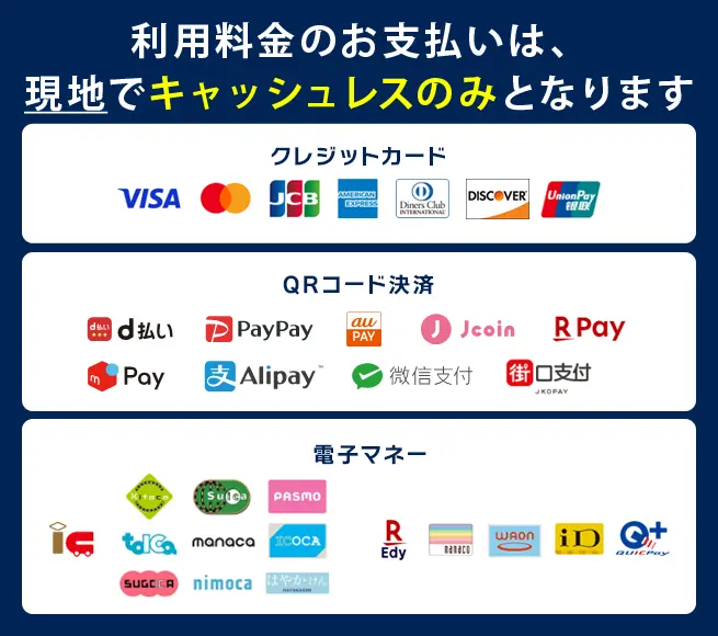 現金でのお支払いはご利用いただけませんので、あらかじめご了承ください。